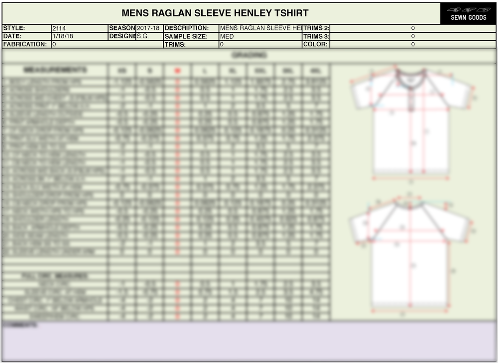 2114 Henley Raglan Sleeve Tech Pack Template Xs 4xl Sewn Goods Pattern Makers Sample Makers Apparel Design And Development